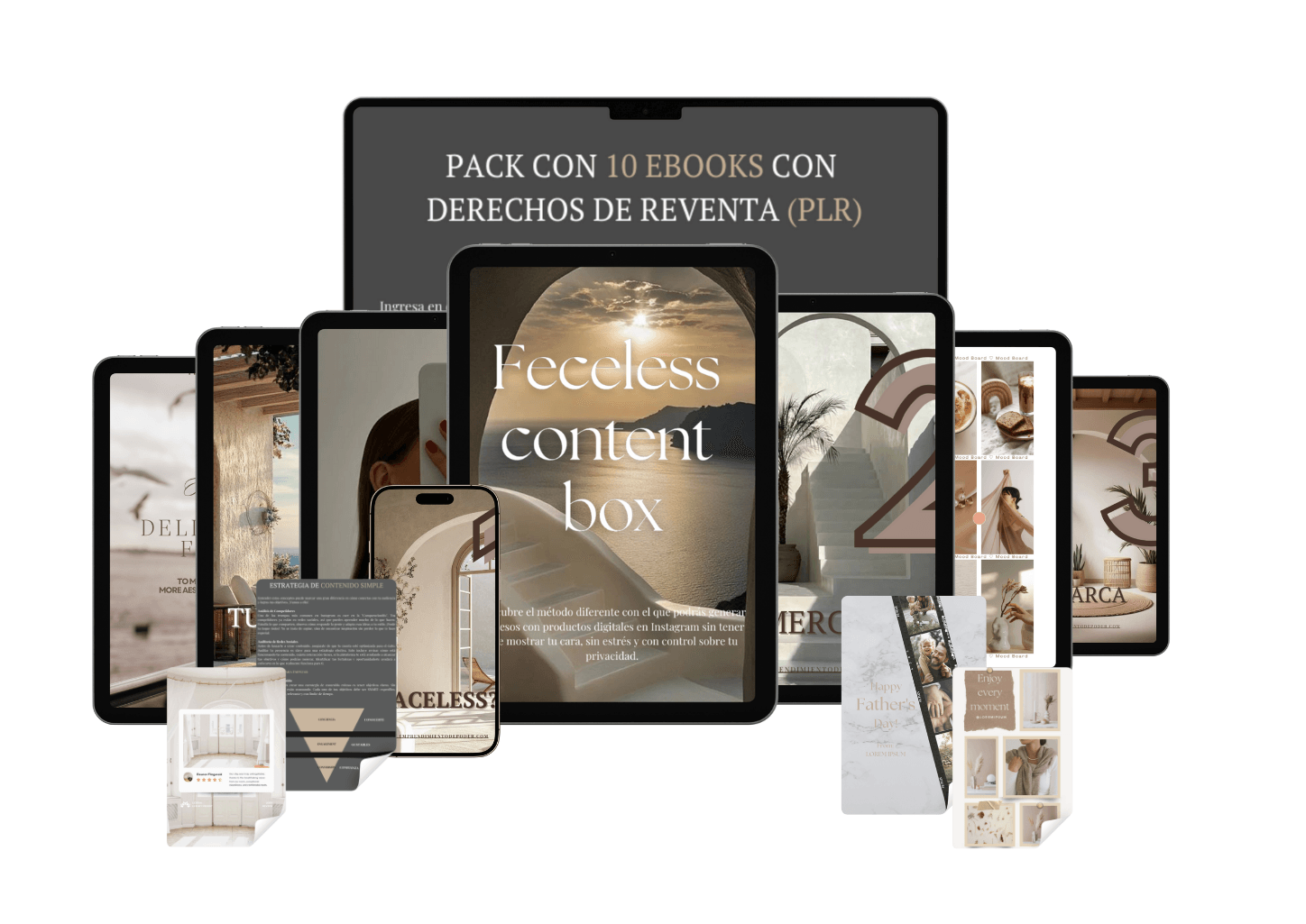FACELESS CONTENT BOX es el paquete todo-en-uno que tu negocio digital necesita, listos para personalizar y venderlos como propios, si quieres vender productos digitales sin mostrar tu rostro. ¿qué pasa si no deseas salir en cámara, eres tímido/a o simplemente no deseas exponerte? pocos abordan lo esencial: cómo generar contenido en redes sociales de forma anónima.Este paquete incluye 10 ebooks con derechos de reventa PLR, lo que te permite vender y personalizar contenido a tu gusto. Además, recibirás una guía completa sobre faceless marketing, enseñándote a crear contenido efectivo sin exponerte. Y como bonus, obtienes reels listos para usar (masculinos y femeninos) y un curso para crear tu link in bio en beacons y stan store, herramientas clave para monetizar y atraer más clientes. Si quieres atraer, convertir y escalar tu negocio digital sin mostrar tu cara, FACELESS CONTENT BOX es lo que necesitas.